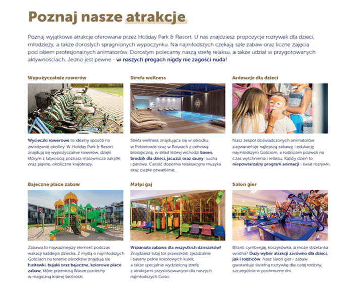 Osoby kontaktowa w sprawie oferty ze Strony Firmy Holiday Park&Resort: Agnieszka Kowalska – Tel. 538 596 180, Justyna Gieparda-Kuśmierska – Tel. 532 430 025, Dominika Oliwa – Tel. 538 667 443